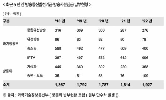 16일 국회 과학기술정보방송통신위원회(이하 과방위) 소속 변재일 의원실(더불어민주당)이 방송통신위원회(이하 방통위)로부터 제출받은 자료에 따르면, 방발기금 분담금 제도 개선안 마련에 앞서 지난해 4월 발주한 ‘미디어환경 변화에 따른 방송통신발전기금 분담금 산정 및 부과체계 개선방안에 관한 연구’ 용역을 최근 마무리했다.