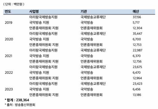 방발기금 대상을 확대할 것이 아니라 운용 효율을 높여야 한다는 의견도 나온다. 에컨대 최근 5년간 방발기금을 부담하지 않는 문화체육관광부(이하 문체부) 소관 기관에 지원된 예산만 약 2383억원에 달하는 것으로 나타났다.