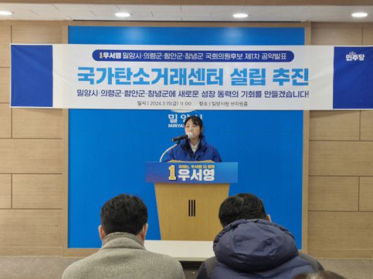4·10 총선에서 경남 밀양·의령·함안·창녕 선거구에 출마한 더불어민주당 우서영 예비후보가 “탄소배출권의 관리체계를 정립하기 위해 우리지역에 국가탄소컨트롤센터를 설립하겠다”며 제1차 공약을 발표했다.