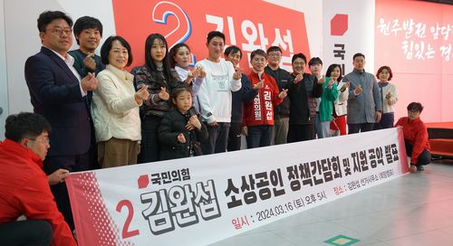 (원주=연합뉴스) 이재현 기자 = 4·10 총선 원주시을 선거구 국민의힘 김완섭 예비후보는 선거사무소인 희망캠프에서 지난 16일 소상공인·자영업자와 정책간담회를 개최한 데 이어 17일 지원 공약을 발표했다.