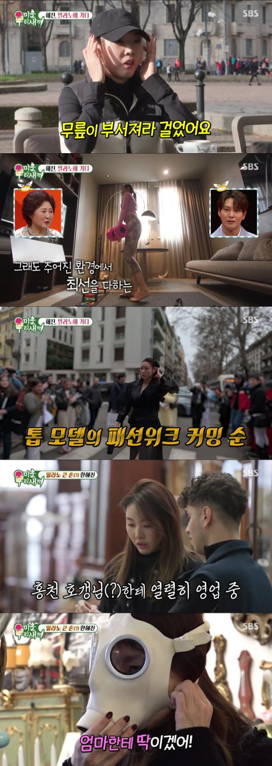 전 세계 패션 피플들이 모이는 '밀라노 패션위크'에 '홍천 미우새' 한혜진이 떴다. 돌체앤가바나의 패션쇼에 셀럽으로 초대된 한혜진은 "2017년 쇼에 섰을 때 쇼 전날 밤에 리허설을 했다. 무릎이 부서져라 워킹했다. 3시간 워킹 테스트를 보고 다음날 쇼 장에 갔더니 5명이 (떨어져서) 안 왔더라"라고 당시의 비하인드 스토리를 전했다.