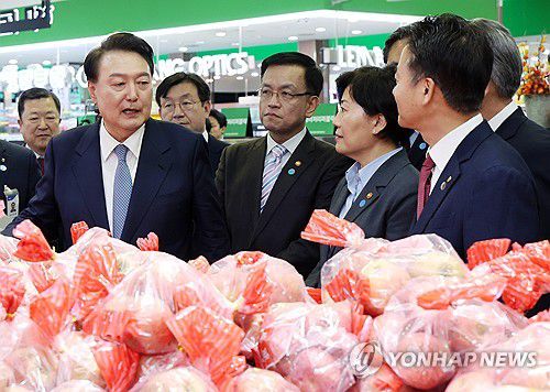 최근 과일·채소 등 먹거리를 중심으로 높은 물가가 지속하고 서민과 중산층의 어려움이 가중하면서 국정 지지도에도 부정적인 영향을 미치는 상황을 반영한 것으로 보인다.