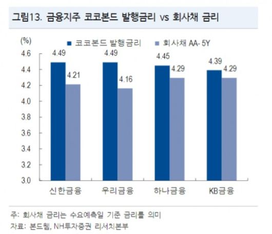 김은기 수석연구위원은 "기준금리 인하가 본격화되기 전 은행 코코본드 상반기 발행 시점에 투자 메리트가 있다"고 제시했다.