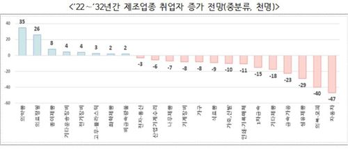 반면 제조업(-14만5천 명), 건설업(-12만6천 명), 농림어업(-9만4천 명) 취업자는 2032년까지 모두 감소할 것으로 예측됐다.