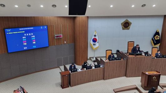 더불어민주당 소속 의원들은 이날 “도의회 역사상 가장 큰 오점이 될 것”이라며 표결에 참여하지 않았다. 현재 충남도의회는 전체 46명 가운데 국힘 33명, 더불어민주당 11명, 무소속 2명이다.