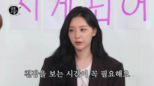 장도연은 각자만의 힐링법에 관해 물었다. 박성훈은 ‘불멍', 김수현은 ‘물멍'이라고 답한 상황. 김지원은 "‘멍'을 연결해야하는 건가. 저는…아이고야"라며 머뭇거려 웃음을 안겼다. 이어 "저는 집에서 소파에 누워서 천장을 보는 시간이 꼭 필요하다"고 말한 뒤 조용하게 "오늘 쉽지 않았다"고 읊조려 웃음을 자아냈다. 장도연은 "천장멍이다"고 맞장구쳤다.