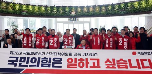 후보들은 "집권 여당의 구성원으로서 지난 21대 국회가 대전시민과 국민의 기대에 제대로 부응하지 못한 점을 진심으로 사과한다"며 "대전지역 국민의힘 후보들은 일하고 싶은 마음을 담아 이번 선거에서 승리할 수 있도록 최선을 다하겠다"고 말했다.