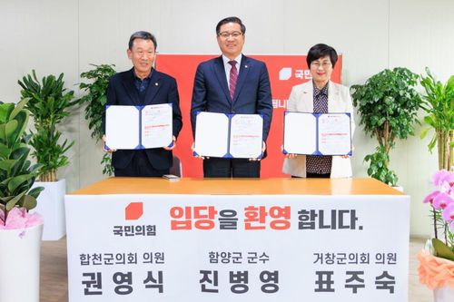 20일 국민의힘 산청함양거창합천 조직위원회에 따르면 최근 진 군수와 함께 무소속 표주숙 거창군의원과 권영식 합천군의원이 국민의힘에 입당서를 제출했다.