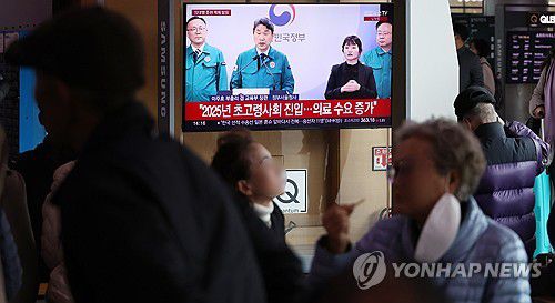 의대정원 배정결과 발표 지켜보는 시민들 |