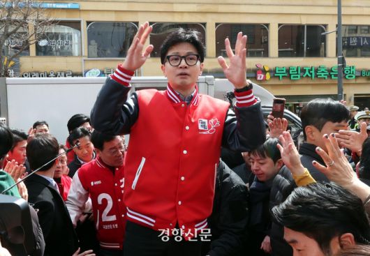 한동훈 국민의힘 비상대책위원장이 20일 오후 경기 안양시 안양 중앙시장 입구에서 시민들에게 인사하고 있다. 성동훈 기자 |
