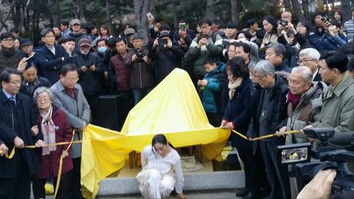 소녀상 앞에서 춤사위 보이는 박정희 전 북구의원 |