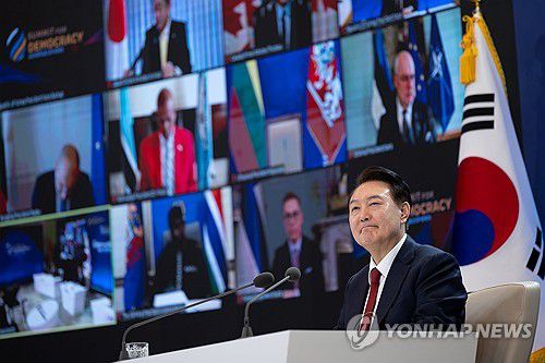 제3차 민주주의 정상회의 참석한 윤석열 대통령 |