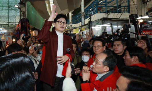 이날 마지막 일정으로 한 위원장은 경북 경산으로 이동해 공설시장에서 조지연 경산 후보를 지원했다. 이 지역에서는 무소속으로 출마한 최경환 전 경제부총리가 조 후보와의 2파전이 펼쳐질 예정이다.