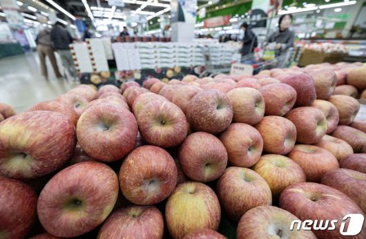 (세종=뉴스1) 나혜윤 기자 = '金사과'로 불렸던 사과의 소매 가격이 농축산물 물가 안정을 위한 정부의 대규모 자금 투입 이후 12%가량 하락한 것으로 나타났다.