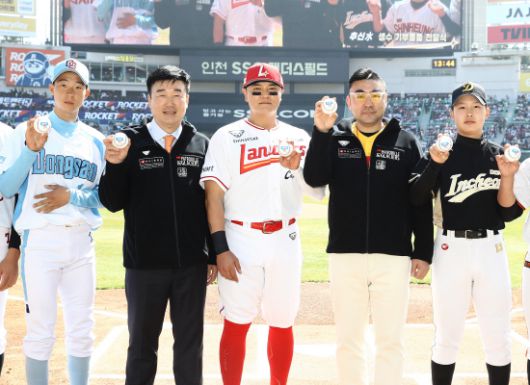 송현석 신세계푸드 대표 등이 참석한 가운데 진행된 이날 후원물품 전달식에선 지난해 '추신水' 판매수익금 3000만원으로 마련한 야구공 4000개가 인천지역 중학교 야구부 6곳에 전달했다. 올해도 관중 1만명에게 '추신水' 1만병을 제공했다.