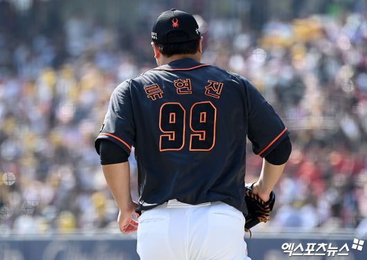그러나 2-2 동점이던 4회말, 야수 실책까지 나오며 결국 3점을 더 내주고 마운드를 내려왔다. 류현진은 문보경을 1루수 땅볼, 박동원을 유격수 땅볼로 처리하며 아웃카운트 2개를 잡았다. 이어 문성주에게 볼넷을 허용했으나 신민재에게 땅볼을 이끌어냈다. 정상적인 수비였다면 이닝 종료. 그러나 2루수 문현빈의 실책으로 이닝이 끝나지 않았다.