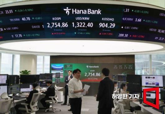 21일 코스피가 2% 중반의 높은 상승세를 보이며 2700포인트를 넘어 2750대로 마감했다. 하나은행 본점에 신축된 인피니티 서울 딜링룸에서 직원들이 업무를 보고 있다. 사진=허영한 기자 younghan@ |