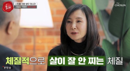 채시라는 "너무 감사하게도 기본적으로 음식을 많이 먹어도 표시는 많이 나지 않는 편"이라며 살이 찌지 않는 체질임을 밝혔다.