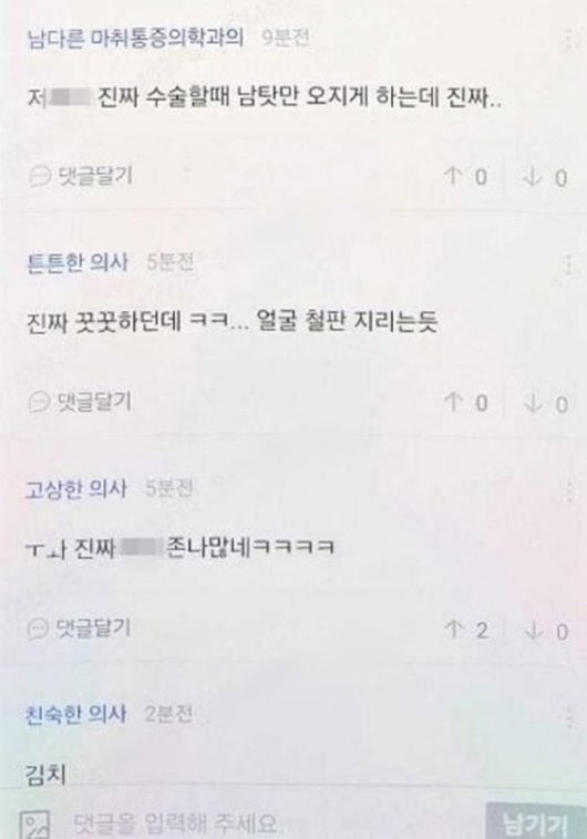 댓글엔 “이름 밝히고 의사 사회에서 묻어야 할 듯” 같은 비방과 욕설이 올라왔다. 초성을 적거나 이름으로 된 삼행시를 짓는 식으로 실명을 특정할 수 있는 댓글도 올라왔다. 가족을 언급하거나 A교수의 나체를 묘사한 그림까지 게재됐다. A교수에게 늦은 밤까지 수시로 전화가 오기도 했다. A교수는 중앙일보와의 통화에서 “메디스태프에서 계속해서 범죄에 가까운 일이 자행되고 있는데 마땅한 조치가 있는지 의심스럽다”고 말했다.
