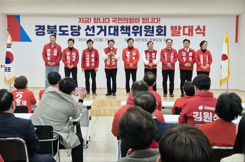 (대구=연합뉴스) 박세진 기자 = 국민의힘 경북도당이 25일 총선 선거대책위원회 발대식을 열고 13개 선거구 석권을 다짐했다.