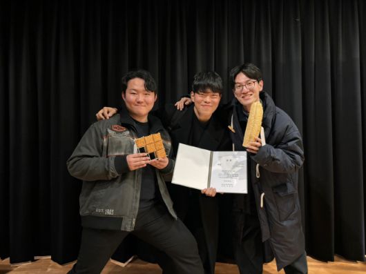 김조운 서울시립대 건축학부 학생과 정세영 한양대 건축학부 학생, 장주영서울시립대 건축학부 학생(왼쪽부터)이 '2024년 정림학생건축상 공모전'에서 대상을 수상한 뒤 기념촬영을 하고 있다. /시립대 |
