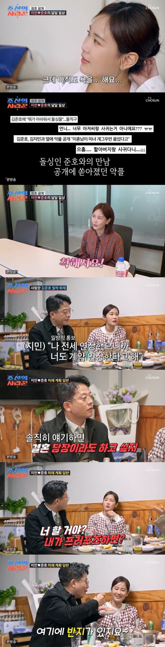 지난 25일 방송된 TV조선 예능 프로그램 '조선의 사랑꾼'에서는 개그우먼 김지민이 공개 열애 중인 개그맨 김준호와 함께 등장해 눈길을 끌었다.