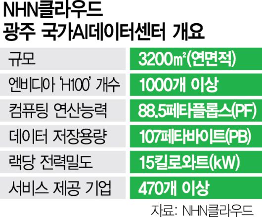 서울로부터 무려 4시간을 달려 찾은 광주광역시 북구 첨단3지구 내 ‘NHN(181710) 국가 인공지능(AI) 데이터센터’. 지난 21일 방문한 이 시설은 연면적 3200㎡, 지상 2층 규모로 지어졌다. 한 눈에 봤을 때는 별다른 특색을 찾아보기 어려운 건물이지만 내부로 들어서니 ‘국내 최초 AI 특화 데이터센터’답게 최첨단 기술력이 집약돼 있음을 실감할 수 있었다.