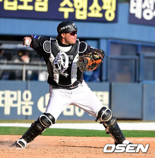 [OSEN=이상학 기자] 프로야구 한화 이글스가 5000만원에 영입한 ‘우승 포수’ 이재원(37)이 부활 조짐을 보이고 있다. 한화 안방이 아주 든든해졌다.
