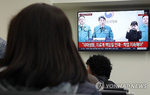 병원에서 이주호 부총리 담화 지켜보는 시민들 |