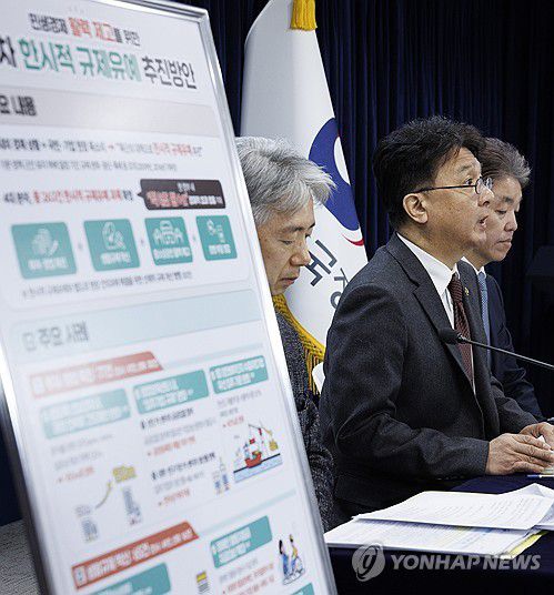 (서울=연합뉴스) 황광모 기자 = 이정원 국무조정실 2차장이 26일 오전 서울 종로구 정부서울청사에서 민생경제 활력 제고를 위한 제1차 한시적 규제유예 추진 방안을 발표하고 있다. 2024.3.27