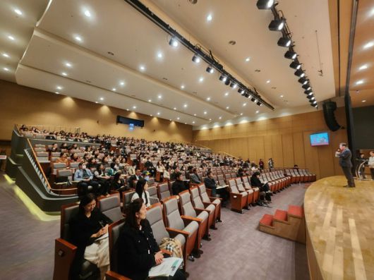 지난 26일 오후 서울 서초구 반포심산아트홀에서 열린 중소사업장 중대재해처벌법 설명회에서 참석자들이 전문강사의 교육을 듣고 있다. 서울시 제공 |
