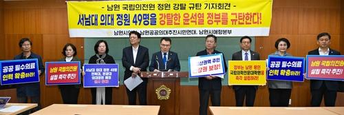 이들 단체는 "이는 폐교된 남원의 서남대 의대 정원 49명을 강탈한 것"이라며 "오래전에 약속한 대로 국립의전원을 남원에 설립하고 정원을 배정하라"고 요구했다.