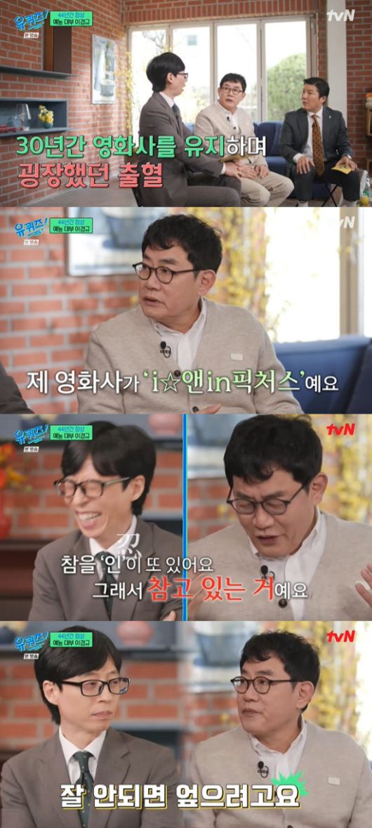 이경규는 "제가 영화사를 차린 지가 90년대에 차렸으니까 30년 됐는데 영화 세 편을 했다. 30년 동안 그 사이사이에 직원도 있었을 거 아니냐. 말을 할 수 없을 정도로 사람들은 쉽게 쉽게 생각하는지 몰라도 굉장한 출혈이 있었다"라며 밝혔다.