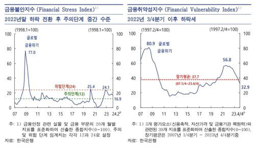 ◇ 금융 불안·취약성지수 동반 하락…"부동산PF·채무상환부담·해외부동산 등은 주의해야"
