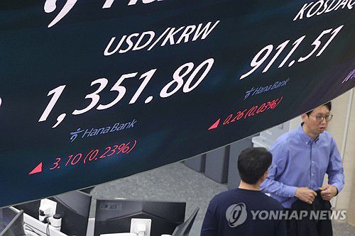 (서울=연합뉴스) 조성흠 기자 = 국내 증시가 28일 1,350원에 육박한 원/달러 환율 탓에 울고 웃었다.