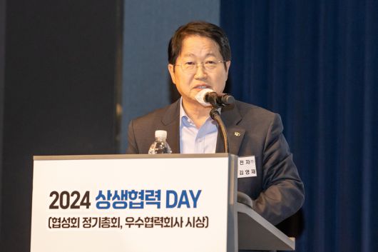 '2024 상상협력 DAY'에서 인사말 중인 김영재 협성회 회장(대덕전자 대표). 사진|삼성전자 |