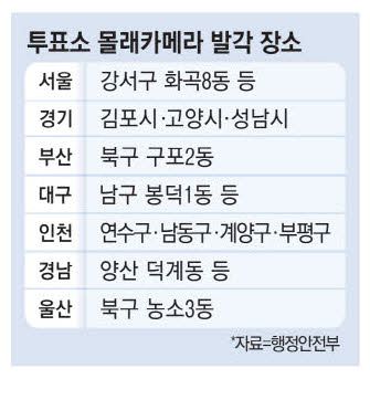 A씨는 인천시 남동구 장수서창동, 서창2동, 계양구 계산1·2·4동 등 사전투표소 5곳에 몰래 들어가 불법카메라를 설치한 혐의를 받고 있다. 카메라는 정수기 주변을 비롯해 투표소 내부를 촬영할 수 있는 위치에 설치됐다.