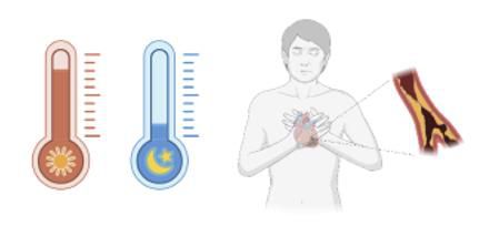 대한심장학회는 환절기에 보온이 부족한 옷을 입고 다니거나, 낮에 이완됐던 혈관이 저온에 노출될 때 급성심근경색이 발생하는 경우가 많은 만큼 주의가 필요하다고 조언한다. 자율신경계의 균형이 깨져 혈관이 수축하고 혈압이 높아지며, 혈소판의 활성화로 혈액 응고가 생겨 혈관이 막힐 위험이 커진다는 설명이다.
