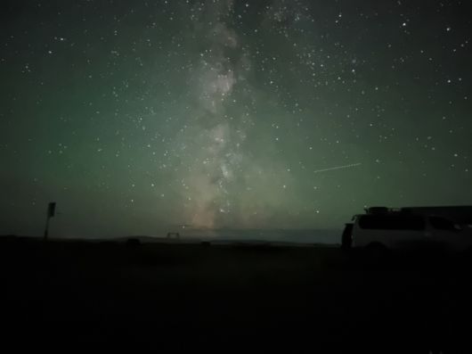 몽골에서 촬영한 밤하늘에 스타링크의 위성이 지나는 모습(스타링크 트레인)이 포착됐다. 스타링크는 대표적인 위성인터넷 서비스 사업자로 현재 약 6000여개의 위성을 지구 저궤도에 띄우고 있다. /사진=배한님 기자 |