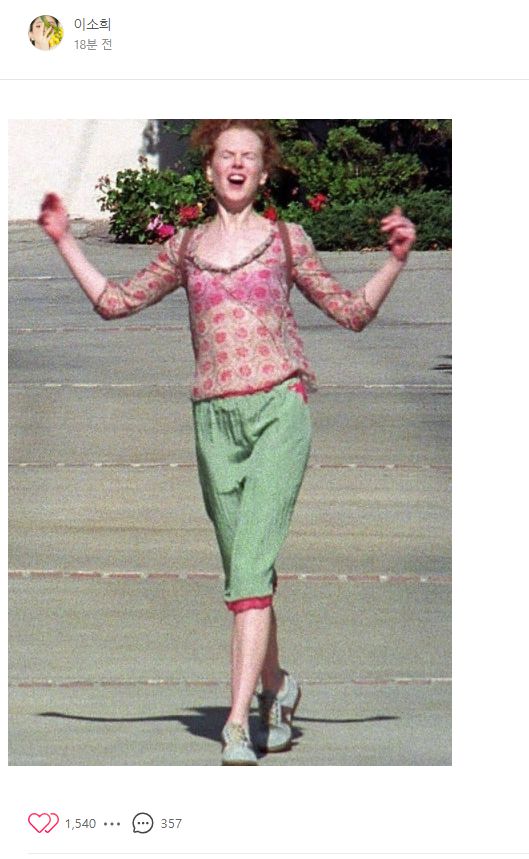 한소희가 게재한 사진은 배우 니콜 키드먼이 톰 크루즈와 이혼이 결정된 날 찍힌 것으로 알려진 장면. 이혼 서류에 서명한 뒤 후련해 보이는 키드먼의 모습에 속칭 ‘니콜 키드먼 이혼짤’로 불린다. 연인들이 헤어진 뒤 홀가분한 마음을 표현할 때에도 많이 쓰이는 밈 중 하나다.