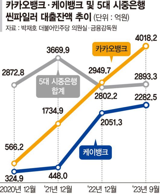 카카오·케이뱅크 씬파일러 대출, 5대 은행보다 2배 더 많았다