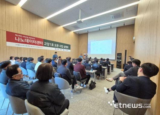 지난달 26일 고양시 향동동 플렉스 데시앙 지식산업센터에서 열린 나노데이터센터 오픈설명회 모습. |