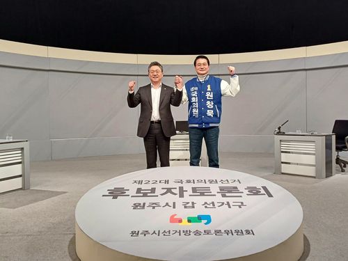(원주=연합뉴스) 이재현 기자 = 2년 만에 맞대결하는 원주시 갑 선거구 국민의힘 박정하 후보와 더불어민주당 원창묵 후보는 지난 31일 열린 선거관리위원회 주관 TV 토론회에서 서로의 핵심 공약을 지적하며 난타전을 벌였다.