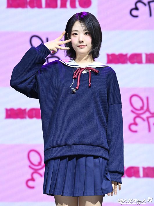 이날 쇼케이스에 참석한 QWER 히나가 포토타임을 갖고 있다.