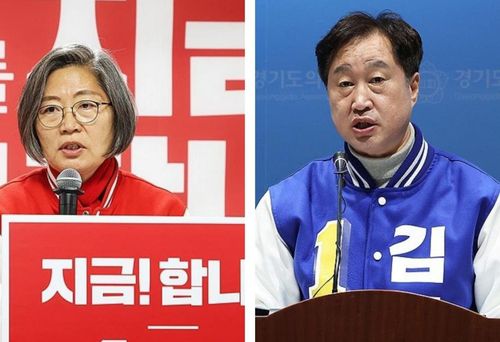 수원시정 국민의힘 이수정 후보(왼쪽)와 더불어민주당 김준혁 후보 |