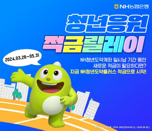 [서울=뉴시스] 이정필 기자 = NH농협은행은 NH청년도약계좌 일시납 가입자를 대상으로 자산형성을 지원하는 'NH청년도약플러스적금'을 출시했다고 1일 밝혔다.