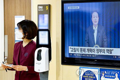 의료개혁 대국민 담화 지나치는 의료 관계자 |
