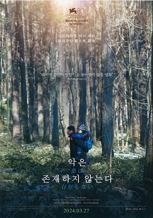 '악은 존재하지 않는다'는 자연과 가까이 살고 있는 부녀의 작은 마을에 갑작스레 글램핑장 건설을 위한 사람들이 찾아오면서 시작하는 이야기를 그렸다. '드라이브 마이 카'의 음악 감독이었던 이시바시 에이코가 라이브 퍼포먼스용 영상을 하마구치 류스케 감독에게 의뢰한 것을 계기로 탄생한 영화이다.