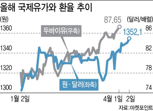 [이데일리 최정희 기자] 국제유가가 뛰고 원화가 달러화 대비 약세를 보이면서 우리나라 경제는 희비가 갈리는 모습이다. 유가 상승, 달러 강세의 근본적인 원인이 미국 제조업 경기 호조에서 비롯됐다는 점에서 국내 수출 경기는 개선 기대감이 커지고 있다. 그러나 동시에 수입물가 상승세를 자극할 뿐 아니라 미 연방준비제도(Fed·연준)의 금리 인하 시기를 늦춘다는 점에서 악재로도 작용할 수 있다. 한국은행의 금리 인하 시점까지 덩달아 늦어지거나 인하 횟수가 축소될 수 있어 가뜩이나 안 좋은 내수경기를 더 악화시킬 수 있기 때문이다. 이에 따라 수출과 내수경기의 차별화가 심화될 전망이다.