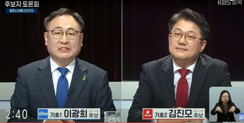 한편 두 후보는 청주교도소 이전과 상대적으로 낙후된 지역 발전이 필요하다는 데는 한목소리를 내면서도 김 후보는 교통과 개발에, 이 후보는 교육과 생태에 방점을 두고 해법을 제시해 대조를 보였다.
